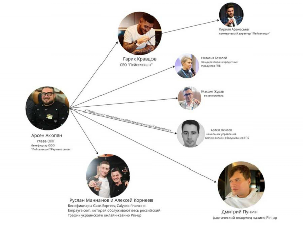 ООО «Пейселекшн» полностью под контролем Арсена Акопяна. Формально его заместитель Гарик Кравцов владеет лишь символическим менеджерским процентом, но фактически исполняет роль доверенного лица и «технического» связного с партнёрами и банками.