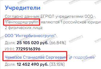 In LLC "Interbusinessgroup," 99% belongs to Stanislav Chemezov, and the company was a shareholder of JSC "Standartcement" until 2021.