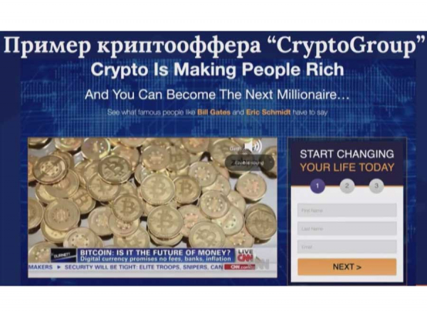 Эдуард Барк (настоящее имя Эдуард Ануфриев) и Максим Гор приводят кейс, как в Facebook была размещена реклама: известный в Великобритании человек выиграл в лотерею 71 миллион фунтов, а затем якобы приумножил эту сумму, вложив в некую криптоконтору.