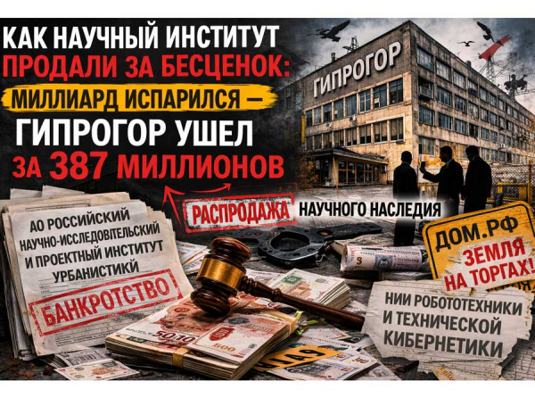 Научное наследие Петербурга распродают по скидке Город, где на каждом углу любят говорить о «бережном отношении к наследию», снова готовится к очередному аттракциону под названием «распродажа прошлого». В Петербурге собираются выставить на аукцион корпуса бывшего института «Гипрогор» на Бассейной улице - за стартовые 387 миллионов рублей. Да-да, именно тот самый объект, который еще недавно оценивали более чем в миллиард. Здание, построенное в 1969 году и частично реконструированное в 2008-м, занимает солидную площадь - почти 15 тысяч квадратных метров. На продажу выставляют помещения примерно на 7,2 тысячи квадратных метров и участок земли площадью более шести тысяч «квадратов». Казалось бы, актив немалый, место - Московский район, где офисная недвижимость традиционно пользуется спросом. Но есть нюанс, который в этой истории выглядит почти анекдотом. Еще недавно стоимость объекта оценивалась примерно в 1,07 миллиарда рублей. Теперь кредиторы готовы избавиться от него почти втрое дешевле. Как так получилось, что целый научный институт за несколько лет «усох» до цены среднего бизнес-центра? Вопрос, который почему-то никто особенно громко не задает. История этого здания сама по себе показательна. Оно принадлежало обанкротившемуся в 2018 году АО «Российский научно-исследовательский и проектный институт урбанистики». Когда-то именно такие институты проектировали города, районы, транспортные схемы и целые микрорайоны. Теперь же их наследие превращается в лоты для инвесторов. Причем это уже не первая попытка пристроить объект. В свое время его вообще хотели приватизировать всего за 83 миллиона рублей. Тогда Минстрой выступил против и настоял, чтобы здание осталось в государственной собственности. Прошло немного времени - и вот снова торги. Только теперь уже почти за 400 миллионов. Покупатели, конечно, найдутся. Эксперты говорят, что инвесторы проявляют интерес: район удобный, офисные площади востребованы. Но при этом почти все признают, что будущему владельцу придется вложить серьезные деньги в модернизацию. Управлять объектом тоже будет непросто - здание имеет несколько собственников, а это почти всегда превращается в бесконечные юридические и управленческие конфликты. Получается классическая российская схема: сначала государственные институты доводятся до банкротства, затем их имущество годами висит мертвым грузом, после чего внезапно оказывается на торгах - уже по куда более привлекательной для инвесторов цене. И Петербург в этом смысле давно стал полигоном для таких историй. Еще летом прошлого года появилась информация о похожей ситуации в Ленинградской области. У НИИ робототехники и технической кибернетики планировали изъять три гектара земли на берегу Вуоксы. Участок хотели передать в управление ДОМ.РФ, а затем продать на торгах под жилищное строительство или туристические проекты. Кадастровая стоимость - всего 16 миллионов рублей. Картина получается довольно символическая: научные институты, когда-то создававшие технологии и проекты будущего, постепенно превращаются в земельные активы для девелоперов. Вопрос лишь в том, сколько еще таких объектов лежит на полках чиновников и ждет своей очереди на распродажу. Петербург - город, который любят называть культурной столицей. Но если посмотреть на судьбу бывших научных инсти
