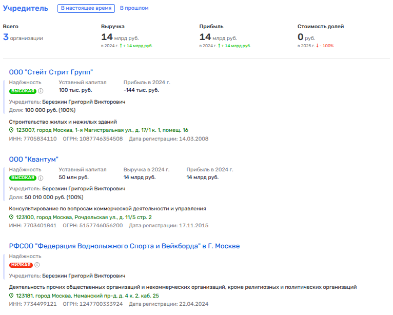 Кстати, сам олигарх Березкин владеет долей в фирме «Стейт Стрит Групп», что как раз и прописана на 1-й Магистральной, которое включено в проект комплексного развития. По той же улице базировалось и ныне ликвидированное «Русинтех» Березкина, а также находятся связанные по цепочке с ним и его семьей фирмы, например, ООО «Вита Проект», в числе совладельцев которого Анна Тюшкевич, дочь Березкина.