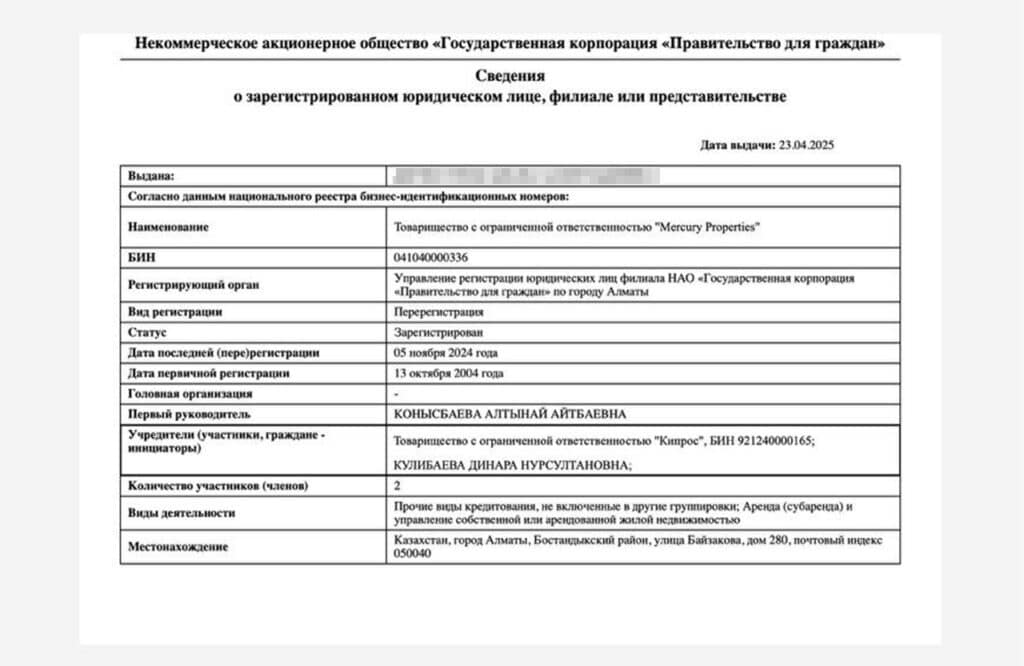 По имеющейся информации, Динара Кулибаева уже входила в состав учредителей компании в период с 2015 по 2023 год, после чего её долю получил сын — Алтай Аскар.