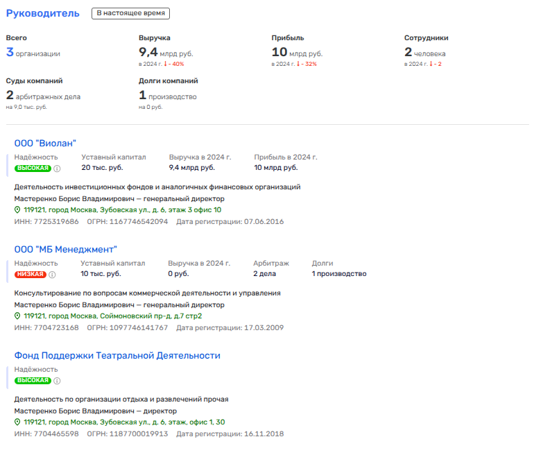 Что касается Бориса Мастеренко - еще одного кипрского директора, то он связан напрямую с Махмудовым. Так, он на сегодня является директором фирмы олигарха - ООО «Виолан».