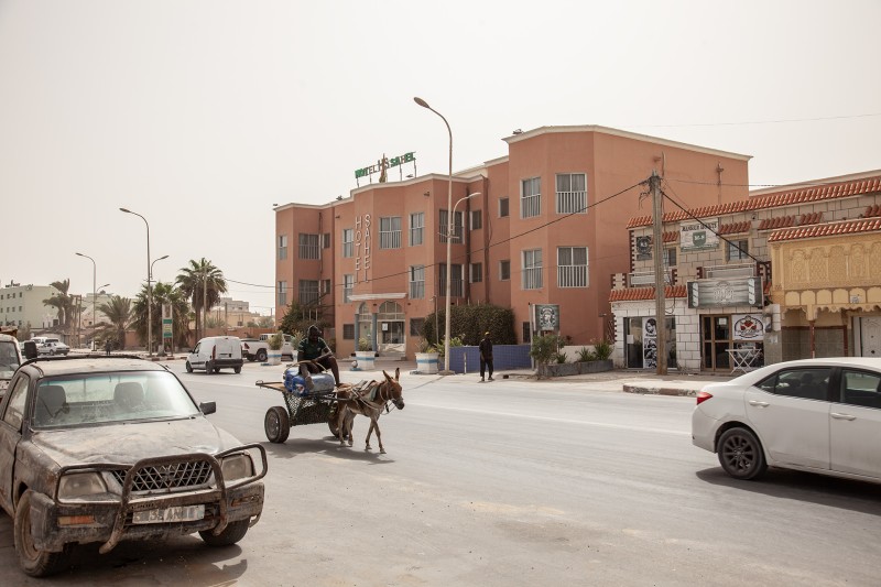 A Mauritanian police officer told OCCRP that Akhlal stayed in the town for several days in the pink-painted Hotel Sahel, where he asked staff to turn off security cameras. He was arrested in the Grand Mosque, not far from the hotel, with several phones, large stashes of money and was “very skinny and stressed.”