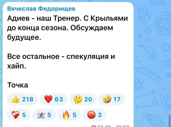 Именно он стал тем, кто поставил точку в вопросе будущего клуба. Уже на следующий день после отчёта состоялась личная встреча Федорищева с Адиевым.